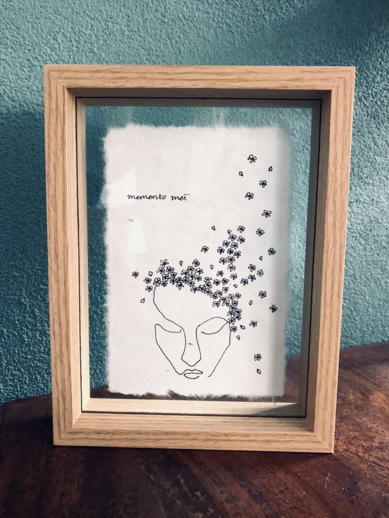 pentekeningen op handgeschept papier in staande lijst